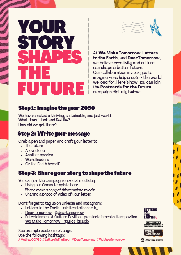 There’s a few things you can do to spread the word. One that’s both impactful and fun is a creative project by Letters to the Earth.